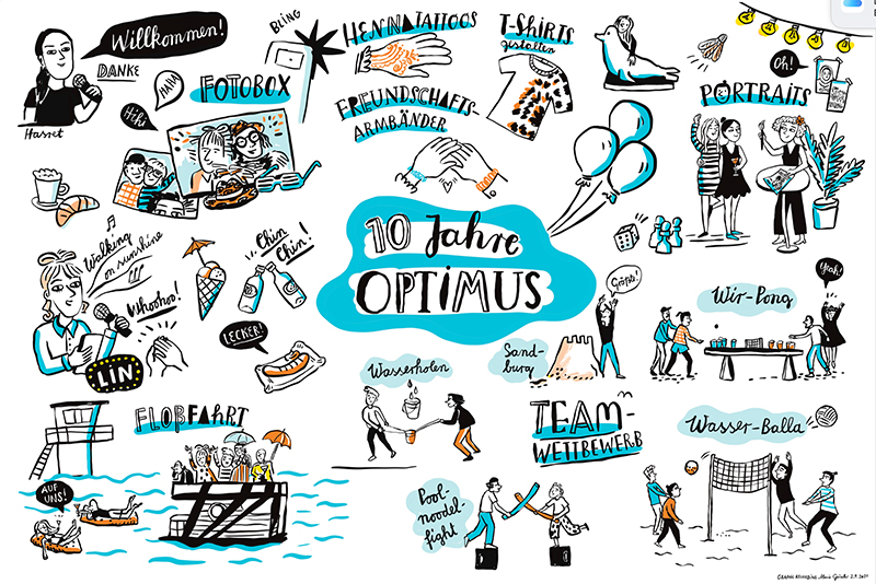 Grafische Begleitung von Teambuilding-Event »10 Jahre Optimus Bildungspartner«